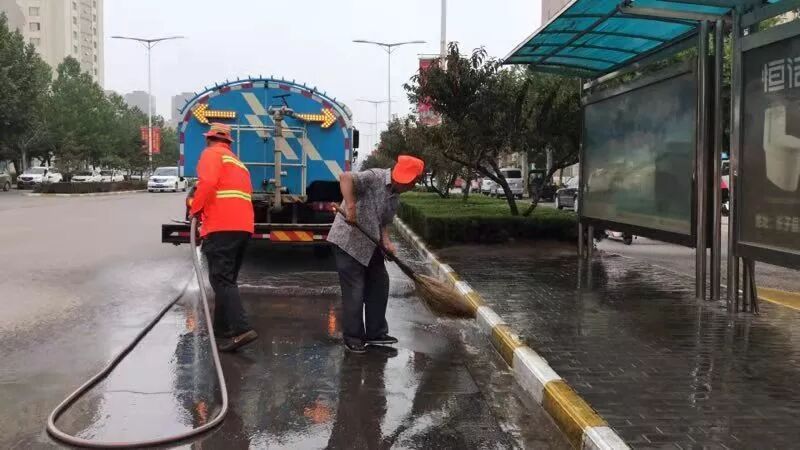 ▲8月8日,县环卫中心开展清洗路面工作,保持道路清洁。
