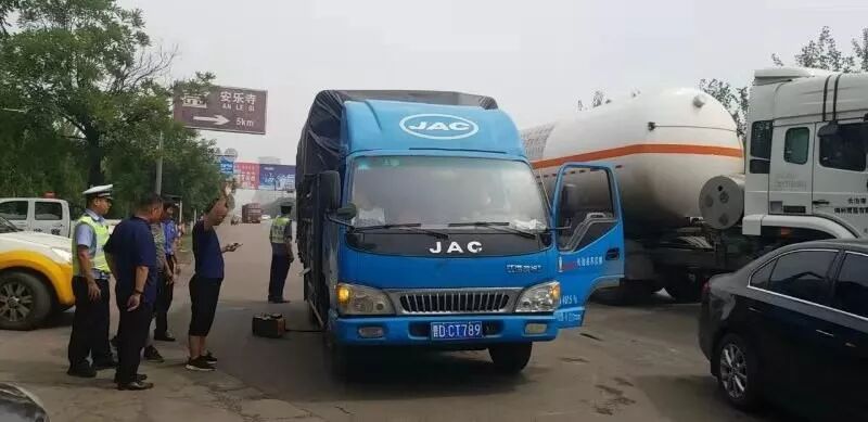 市生态环境局长子分局联合交通局、交警队在西上坊路口检测柴油汽车尾气。