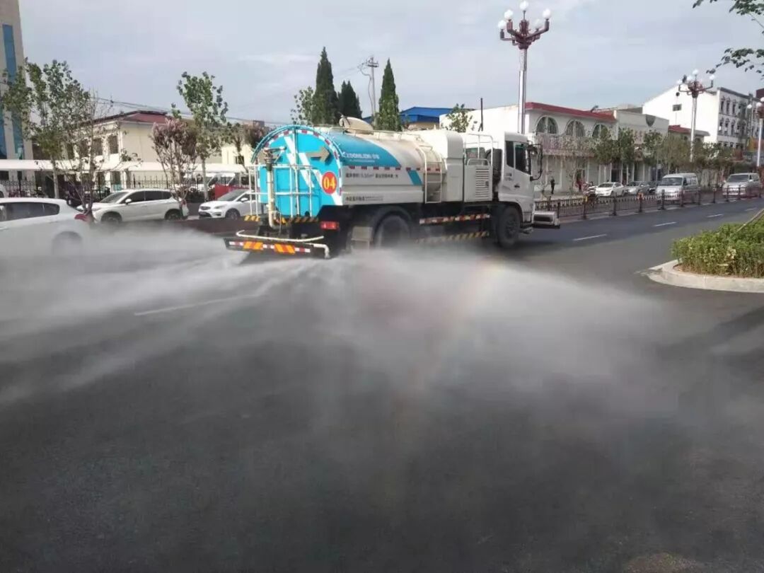 县环保部门对东大街、漳源路、鹿谷大街进行洒水降尘