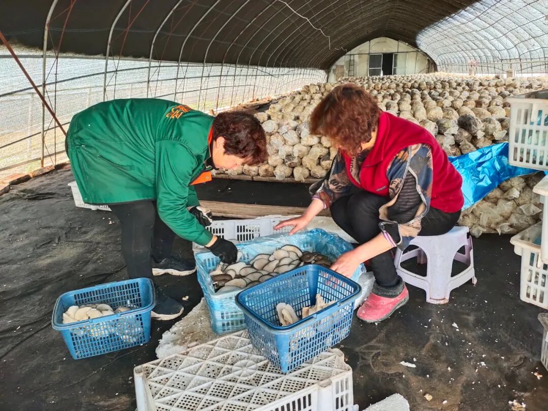 当下正是春耕农忙的好时节,位于大堡头镇的紫丹科技生物有限公司各个农业种植园内,种植户正在对已经成熟的平菇进行采集、装箱,一派热闹忙碌的景象。