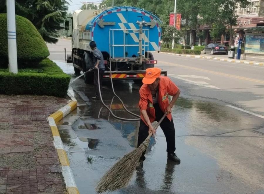县环卫中心继续组织开展清洗路面工作,保持道路清洁